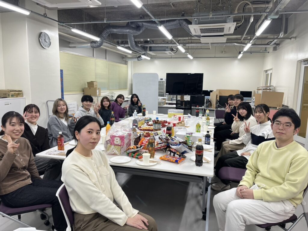 2025年12月16日(火)に、今年度の研究室配属歓迎会を開催しました。大内さん、高橋さん、竹永さん、茂木さん、糖質化学研究室へようこそ!少し遅くなってしまいましたが、おいしい食事やお菓子を囲みながら、終始和気あいあいとした雰囲気の歓迎会となりました。今年度は人数も増え、研究員の方々を含めると、ラボメンバーは総勢16名となります。これだけの規模になることで、互いに助け合い、情報交換を行いながら、チームとして研究に取り組める環境が一層整ってきたと感じています。主体的に研究活動に打ち込み、ぜひ有意義な時間を過ごしてもらえれば幸いです。「人にやさしく、自分に厳しく」を合言葉に、チーム一丸となって頑張っていきましょう!当日は、共同研究をして頂いている日清食品ホールディングス株式会社の宮野様にもご参加頂きました。ありがとうございます。