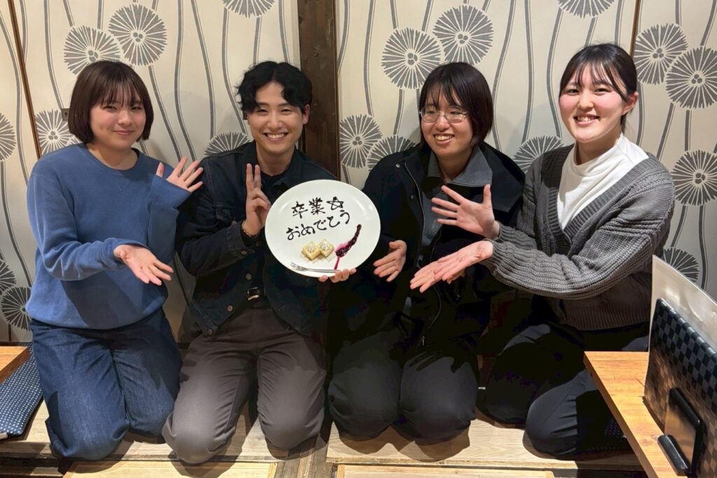 2026年2月26日(木)に研究室の打ち上げを行いました。今年度は私自身、余裕のない場面もありましたが、皆さんの努力や自主的に研究を楽しむ姿勢に本当に元気をもらいました。来年度も多くの良い成果が生まれると確信しています。一つひとつの発見を大切にしながら、一歩一歩誠実に、研究に邁進していきましょう。一年間、本当にお疲れさまでした。本会を企画してくださった須田大健さん、ありがとうございました。とても楽しい時間でした!